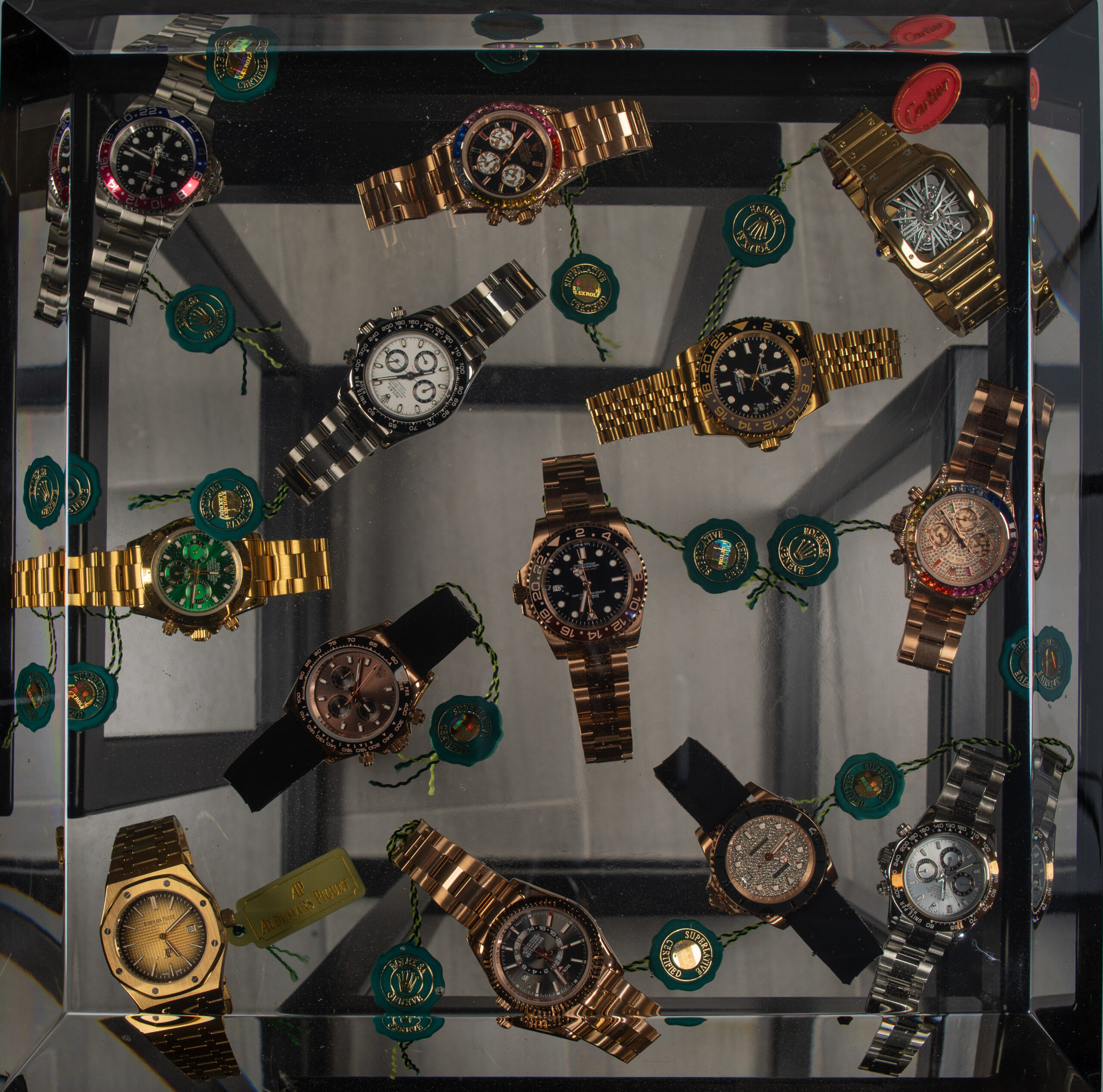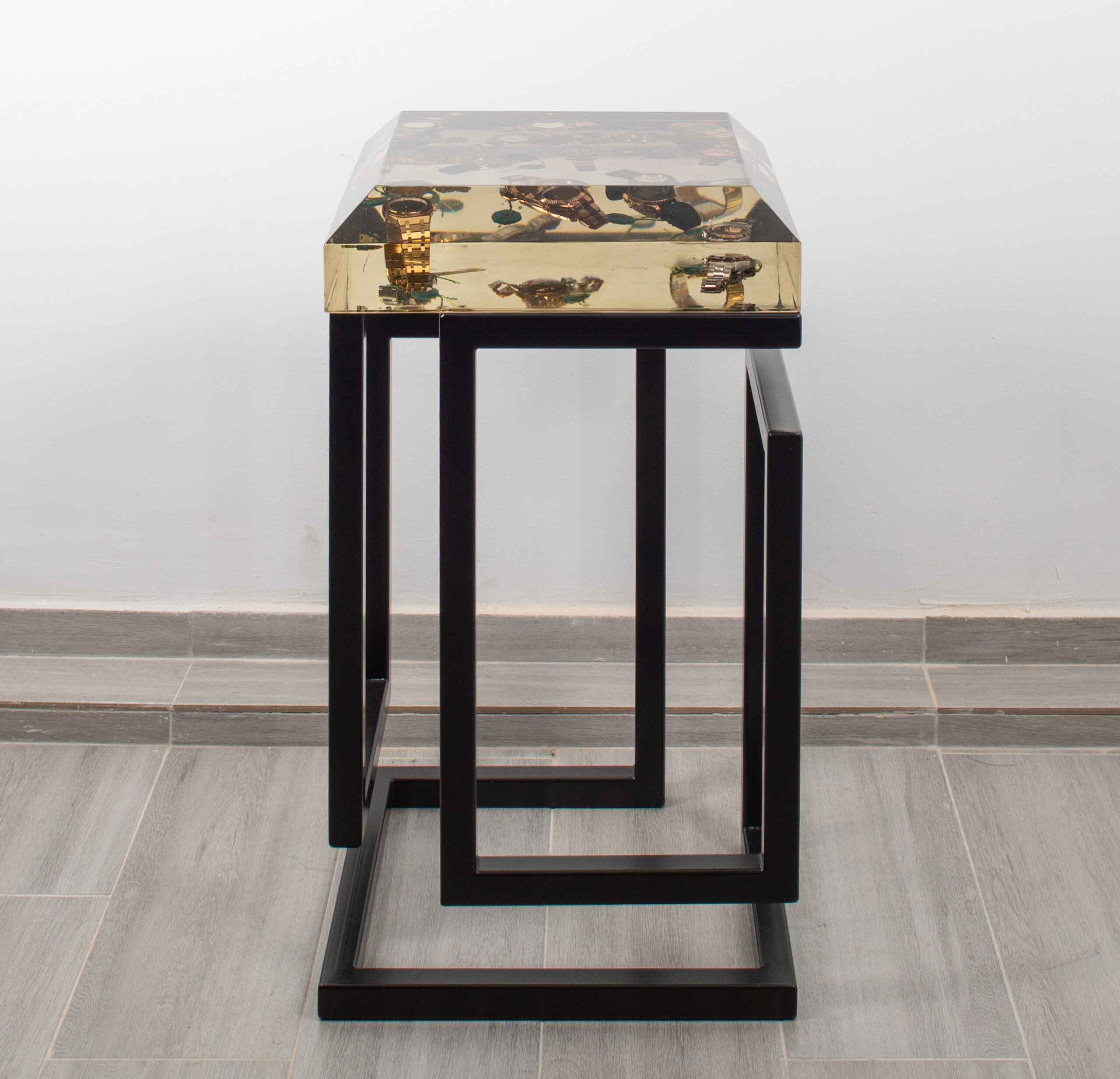 Bring a touch of luxurious sophistication to your space with Fashion Love Table, a striking square design piece that merges functionality with contemporary art. Crafted with a sleek aluminum base and a stunning epoxy resin tabletop, this creation captivates the eye with embedded Rolex watches — symbols of prestige and timeless elegance. The transparent, high-gloss epoxy surface enhances the brilliance of the watches, creating a dynamic interplay of light, depth, and reflection. Both practical and artistic, Fashion Love Table transforms a functional object into a bold statement of design and exclusivity. With its refined finish and unique concept, it commands attention and sparks conversation, whether placed in a modern living room, office, or luxury gallery setting. Designed for those who appreciate originality, craftsmanship, and iconic style, this table is more than furniture — it is a one-of-a-kind work of art. Perfect for collectors, design lovers, or anyone looking to add a touch of prestige to their interior.