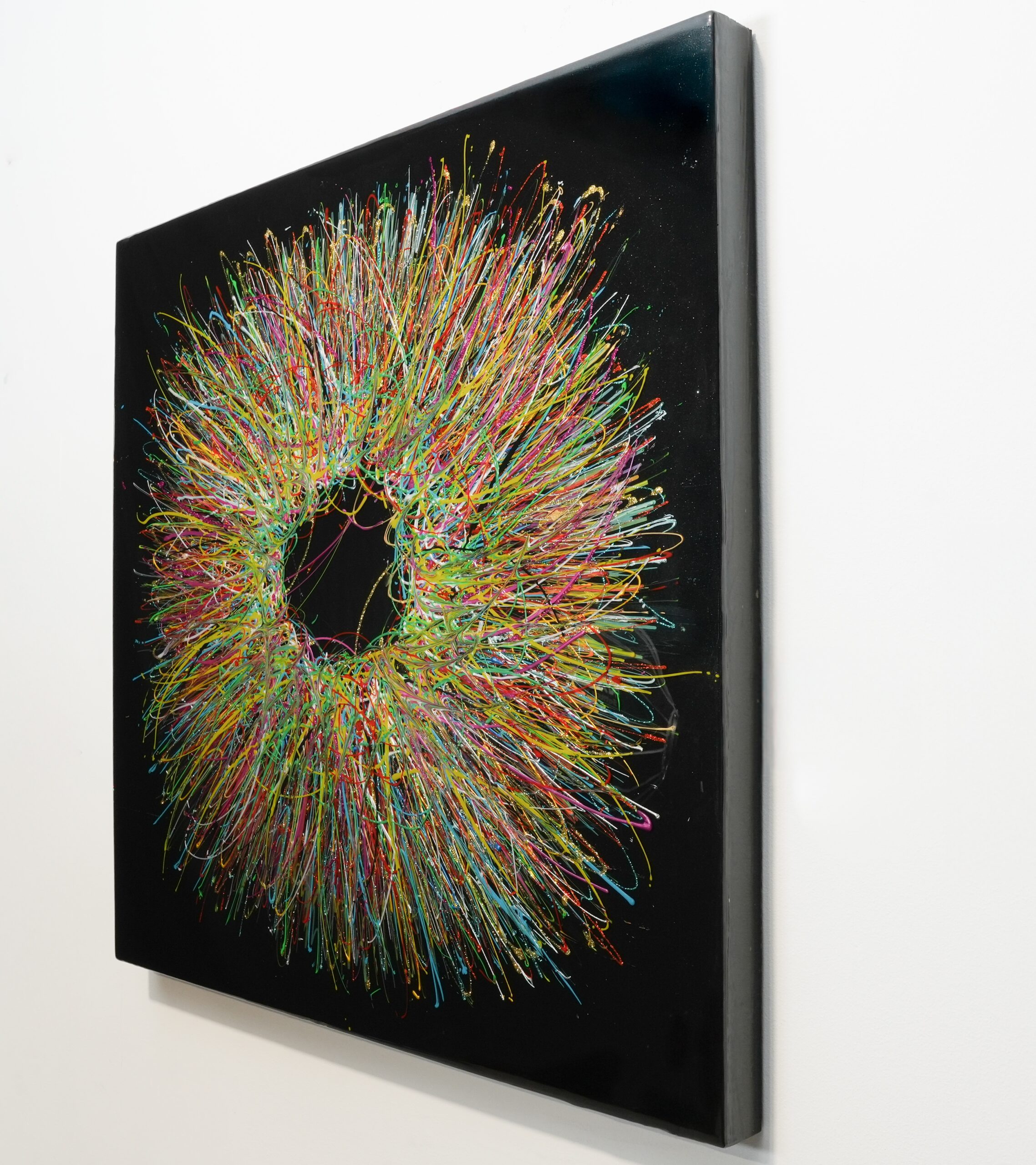 The use of premium epoxy enhances the vibrancy of the pigments and gives the artwork a striking glass finish, intensifying its visual impact while preserving the integrity of the composition. This special execution makes Iris particularly rare within Chiew’s body of work, adding an extra level of exclusivity and desirability.