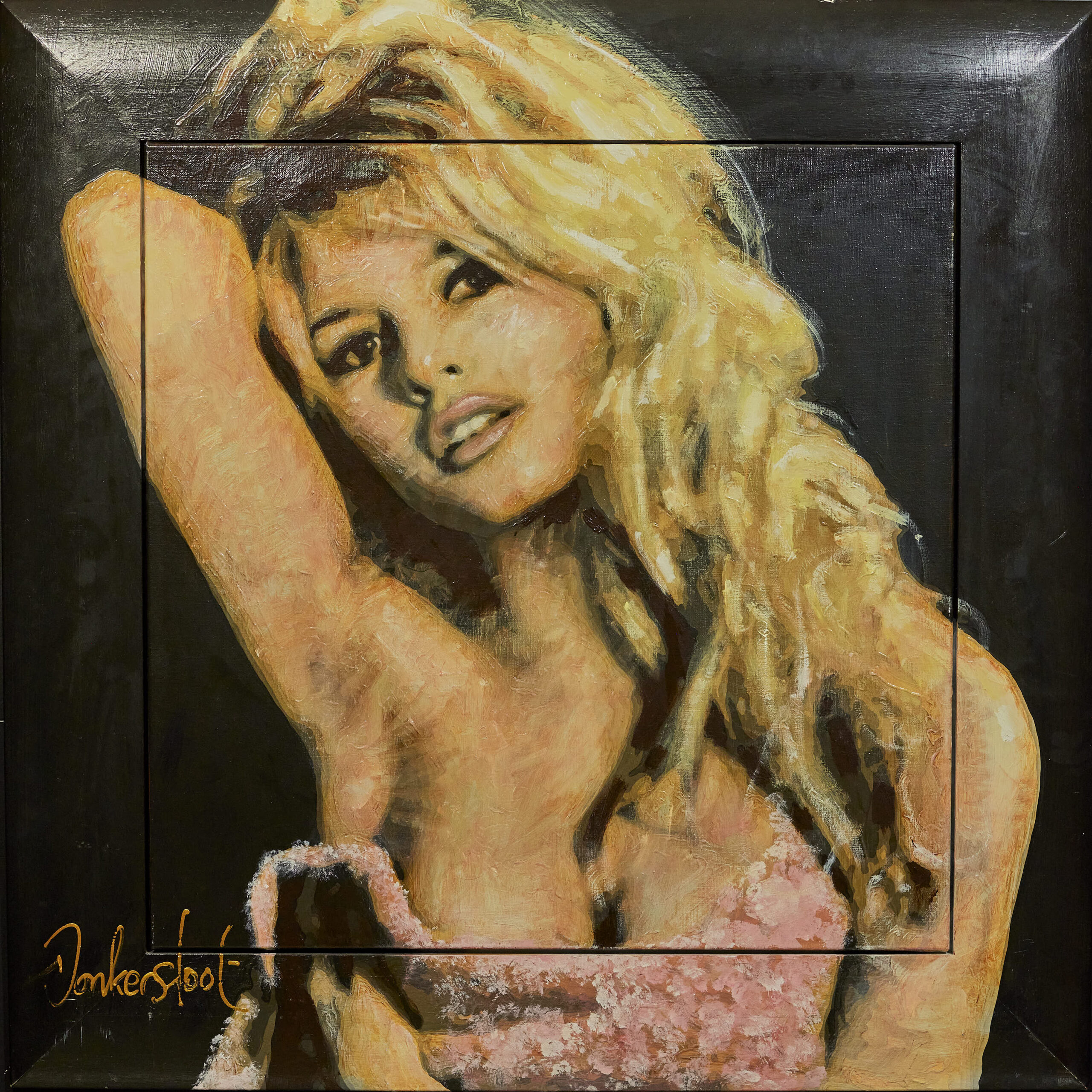 This stunning artwork by Peter Donkersloot portrays a young and radiant Marilyn Monroe wearing a large yellow hat that brings a vibrant touch of color and joy to the painting. Using the Painted gicleé technique, the painting has a unique texture and depth, bringing Marilyn’s smiling face and the smooth curves of the hat to life. Measuring 100x100cm and with a limited edition of only 8 copies, this artwork becomes a valuable and collectible piece. Whether you are a fan of Marilyn Monroe or of the work of the artist Peter Donkersloot, this is a unique opportunity to own an inspiring and beautiful piece of art.