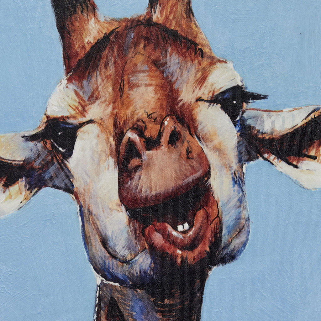 This beautiful artwork by Peter Donkersloot features a giraffe’s head with a soft blue tone in the background, creating a charming contrast and a sense of serenity. With the Ingeschilderde gicleé technique, the artist adds layers of acrylic paint to give depth and texture to the image, making it almost three-dimensional. The artwork is printed on high-quality canvas, ensuring that every detail is faithfully reproduced. With its realistic style and skilled use of color, this artwork is a lovely choice for nature and animal lovers. With a dimension of 53x47cm, this artwork is perfect for adding to any wall space. Get this beautiful artwork now and give an elegant and charming touch to any environment.