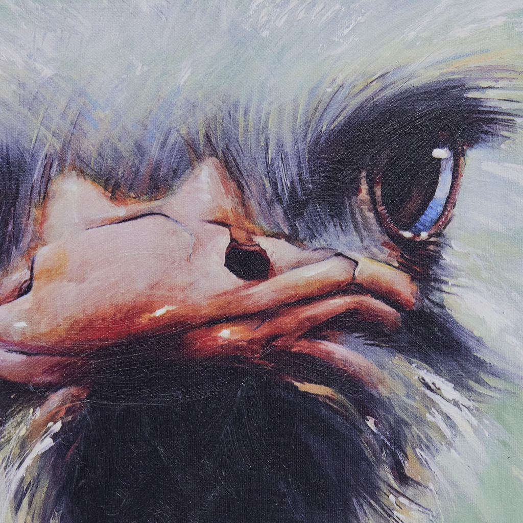 The image portrays an ostrich, a large and impressive bird mainly found in Africa. The painting is rich in vibrant colors and impressive details, capturing the beauty and majesty of the animal. The ingeschilderde gicleé technique means that the print was enhanced by the artist’s hand, adding additional layers of paint to give the image an even more impressive and three-dimensional effect.
