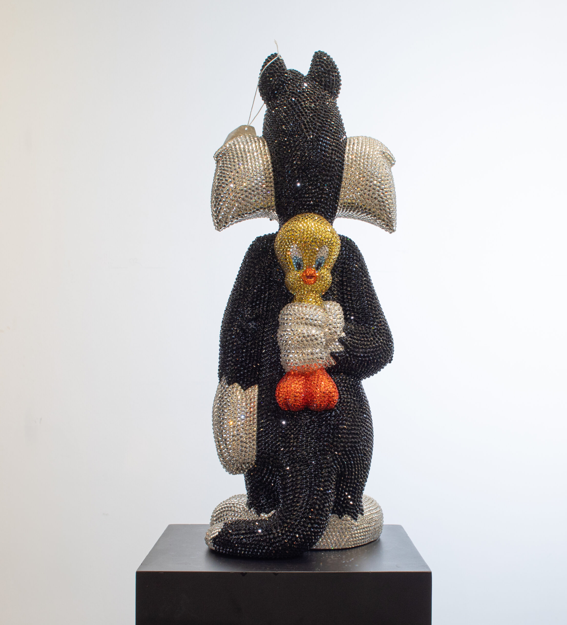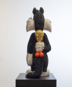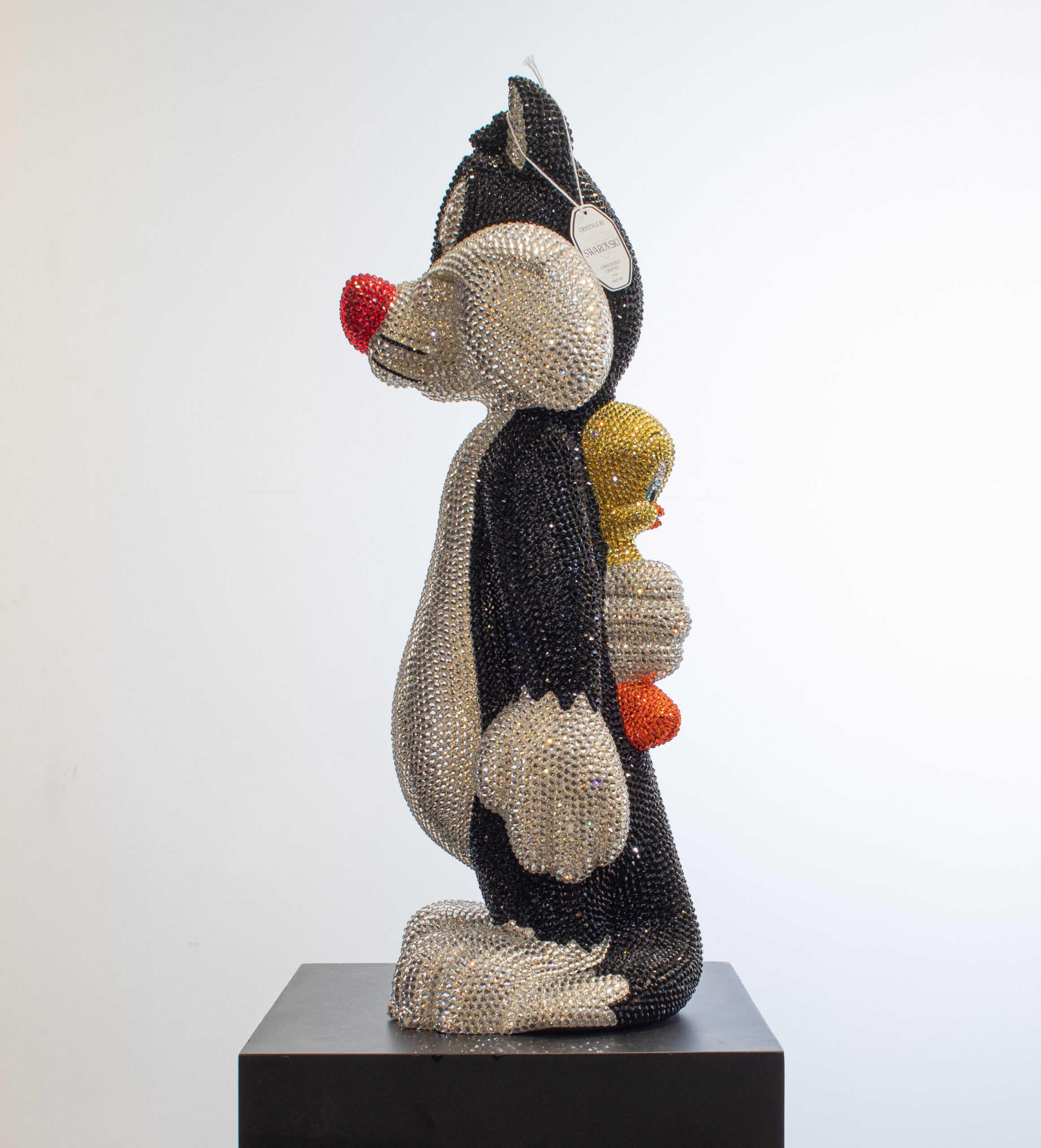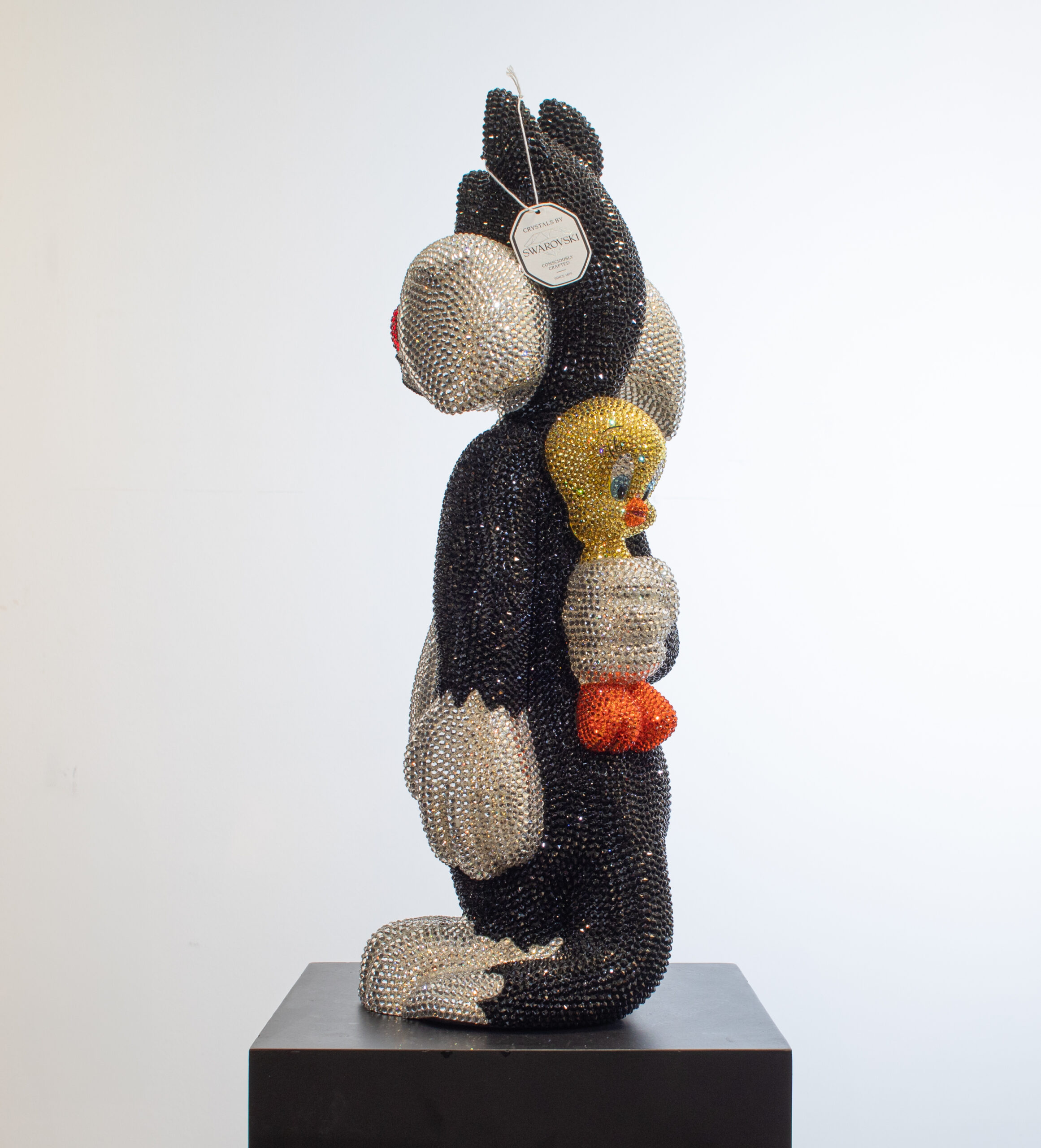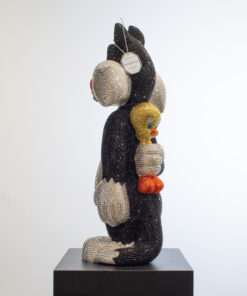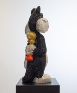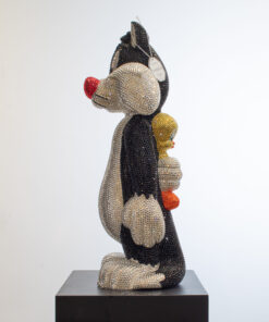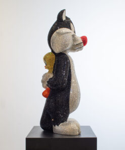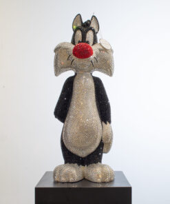 Add a touch of playful sophistication to your collection with this dazzling sculpture of Sylvester holding Tweety behind his back. Meticulously crafted and encrusted with approximately 20,000 hand-set Swarovski crystals, this one-of-a-kind artwork sparkles with luxury and charm. The shimmering surface highlights every curve and detail, transforming two beloved cartoon icons into a statement of contemporary art and design. Balancing nostalgic humor with refined craftsmanship, the piece embodies both whimsy and elegance, making it a striking centerpiece for any modern interior. Its radiant presence captures light from every angle, ensuring it draws attention and admiration whether displayed in a private collection, gallery, or luxury living space. Designed for those who value exclusivity, artistry, and a sense of wit, this sculpture is more than a playful tribute to childhood memories — it is a unique collector’s treasure, blending pop culture with high-end artistry in a truly unforgettable way.