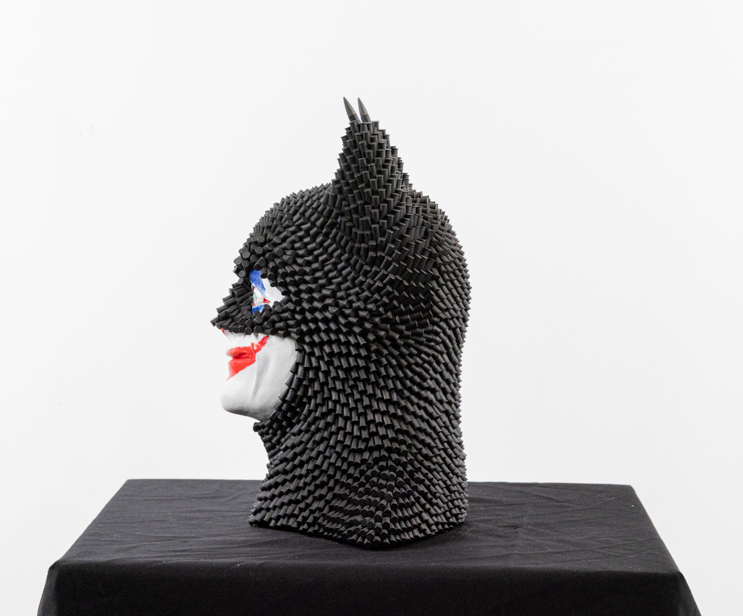 Blending mystery, menace, and masterful craftsmanship, is a striking silhouette sculpture by contemporary artist Pawel. Drawing inspiration from the shadowy worlds of figures like the Joker and Batman, this piece captures the duality of chaos and control in a form that’s both iconic and unsettling.